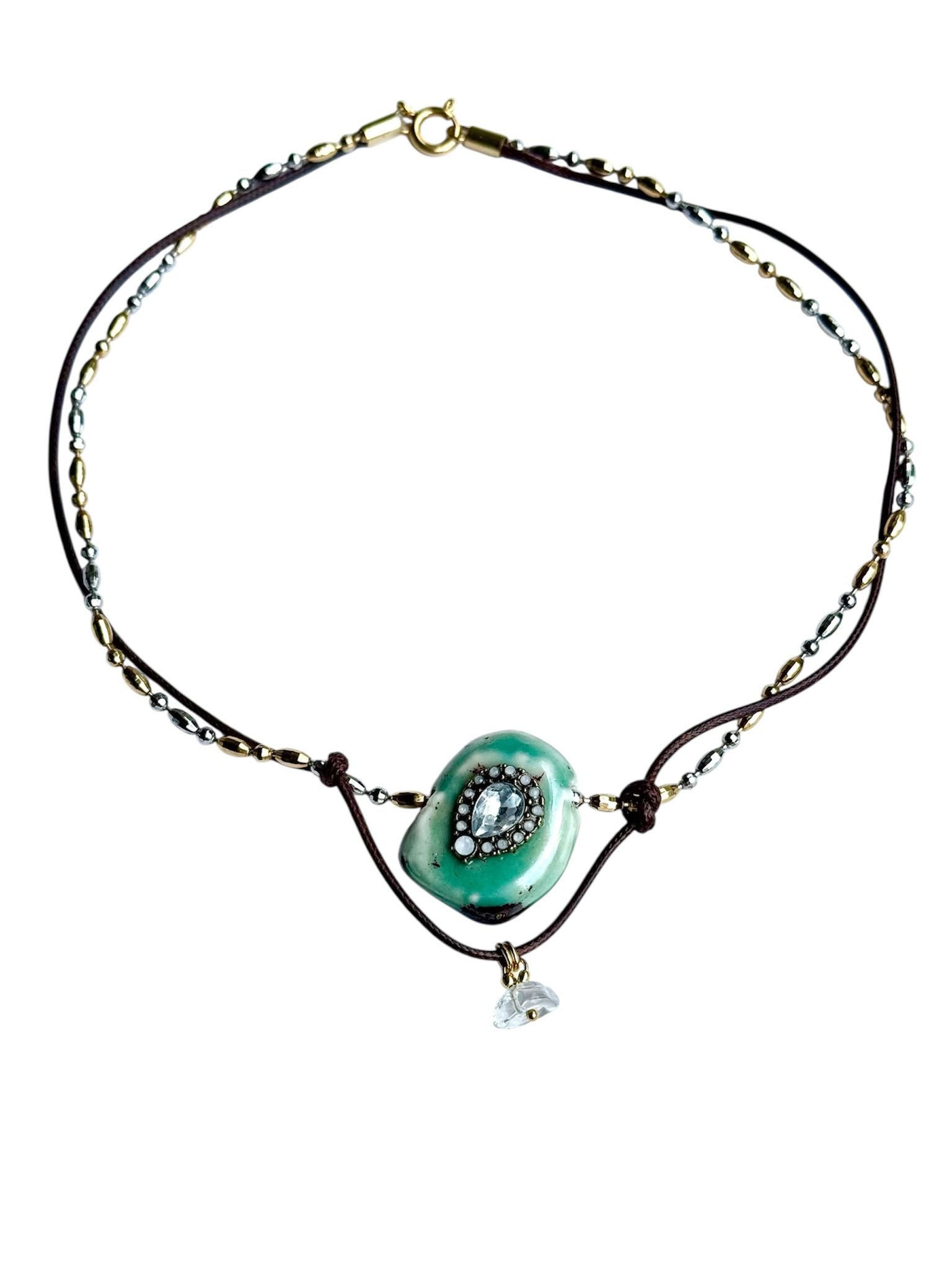 Keramika, vintažinė detalė , bižuterinė grandinėlė