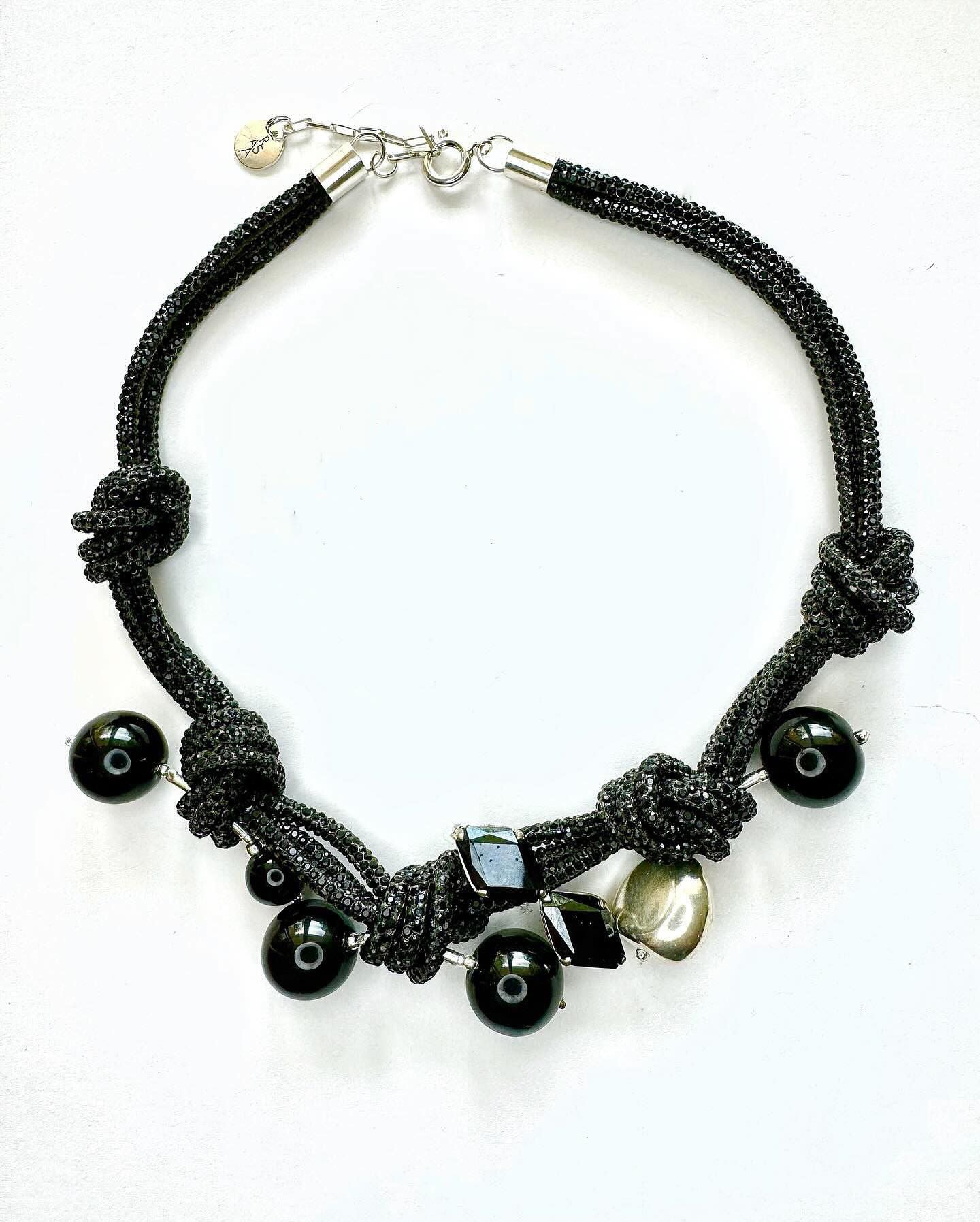 Tekstilinė impregnuota virvė, agatas , sidabras