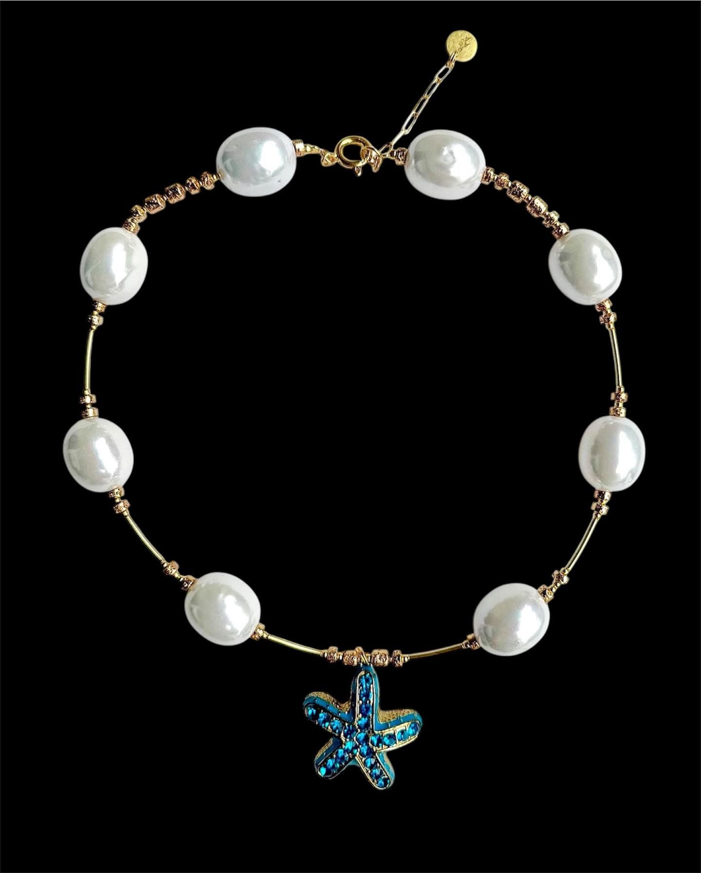 Vintažinė žvaigždė, perlų masė(2cm) , lava , auksuotas sidabras