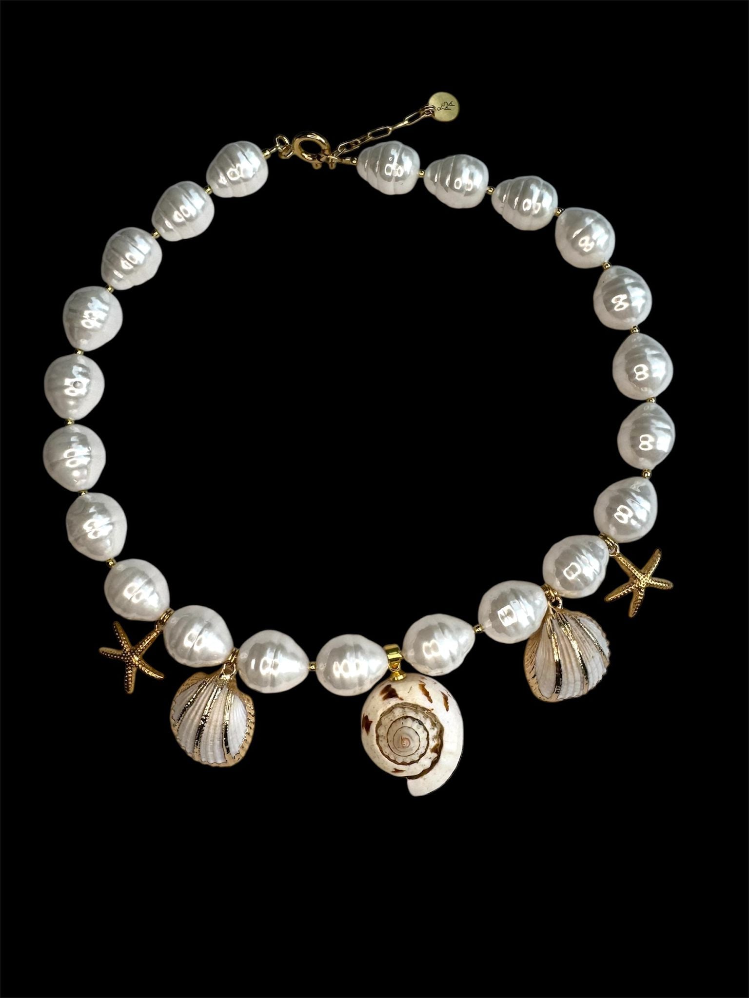 Perlų masė (1,7cm) , kriauklės , auksuotas sidabras